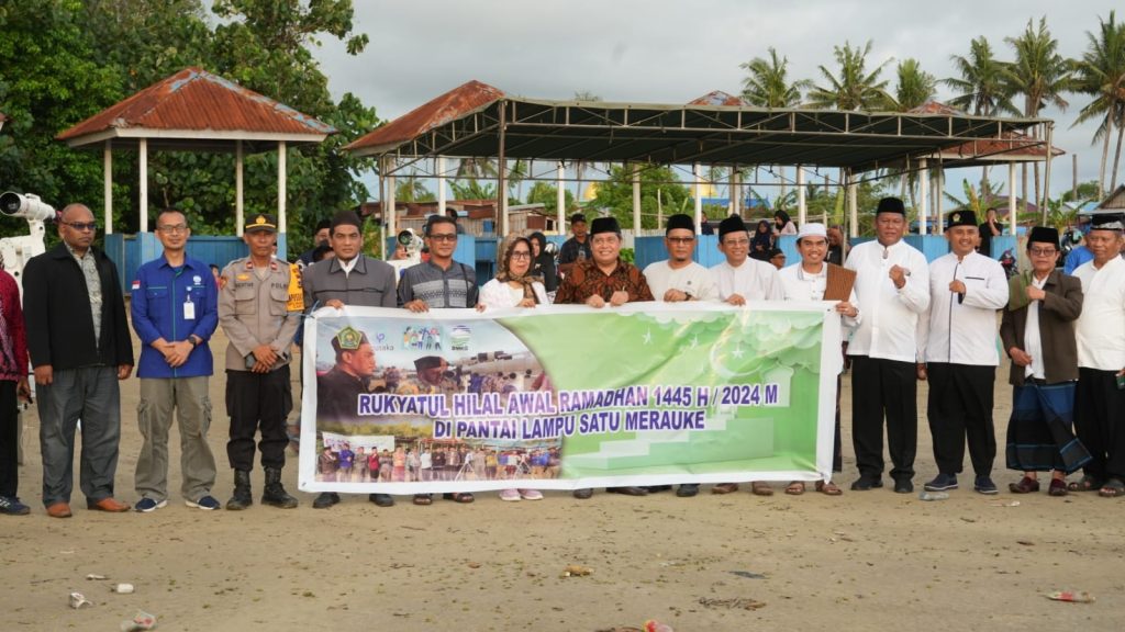 PAPUAinside.id, JAYAPURA—Tim Falakiyah Provinsi Papua dan Balai Besar Badan Meterologi Klimatologi dan Geofisika (BMKG) Wilayah V Jayapura melakukan pemantauan Hilal 1 Ramadhan 1445 H/2024 di Pantai Lampu Satu, Kabupaten Merauke, Provinsi Papua Selatan, Minggu (10/3/2024).