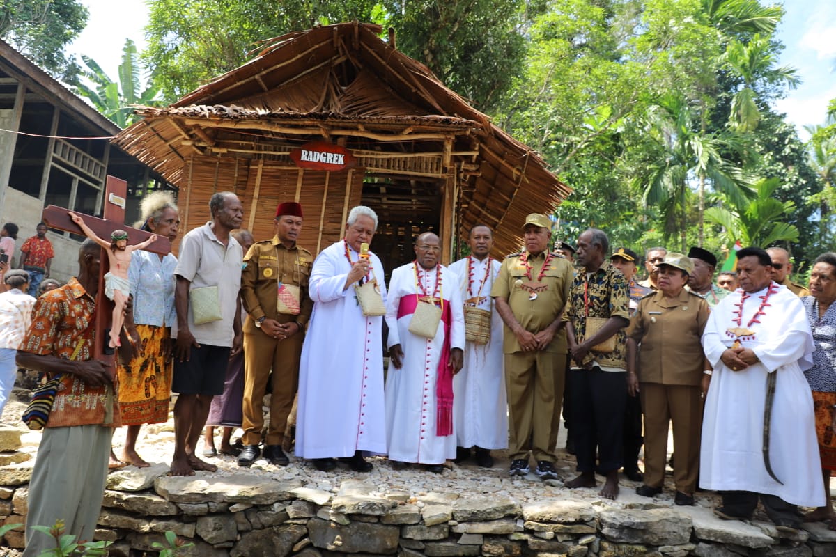 Pada peletakan batu pertama ini, diawali perwakilan tokoh adat keluarga Muslim kampung Sekru, kemudian Uskup Manokwari Sorong dan Bupati Fakfak.