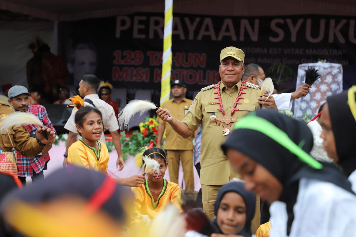 Gubernur Waterpauw mengaku terharu setelah menyaksikan secara langsung prosesi perayaan peringatan Misi Katolik yang tidak hanya di lakukan oleh umat Katolik, namun adanya keterlibatan keluarga Muslim.