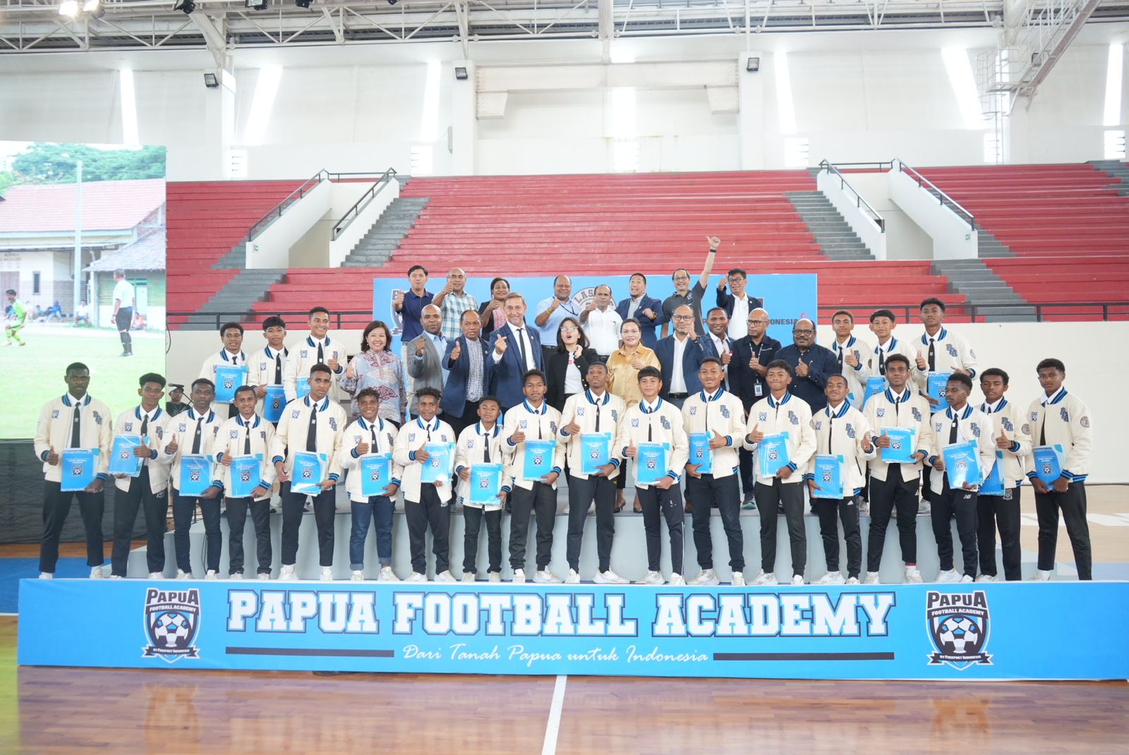 Suasana haru sekaligus bahagia mewarnai ruang indoor hall Basket Mimika Sports Complex, menandai kelulusan 24 Anak-anak berbakat asal Papua ini menuntaskan pendidikan selama 2 tahun di kawah candradimuka sepakbola, Papua Football Academy (PFA). Didampingi pelatih dan staff ofisial lainnya yang telah memiliki sertifikasi lisensi dan sarat pengalaman dengan dipimpin oleh Direktur Akademi Wolfgang Pikal