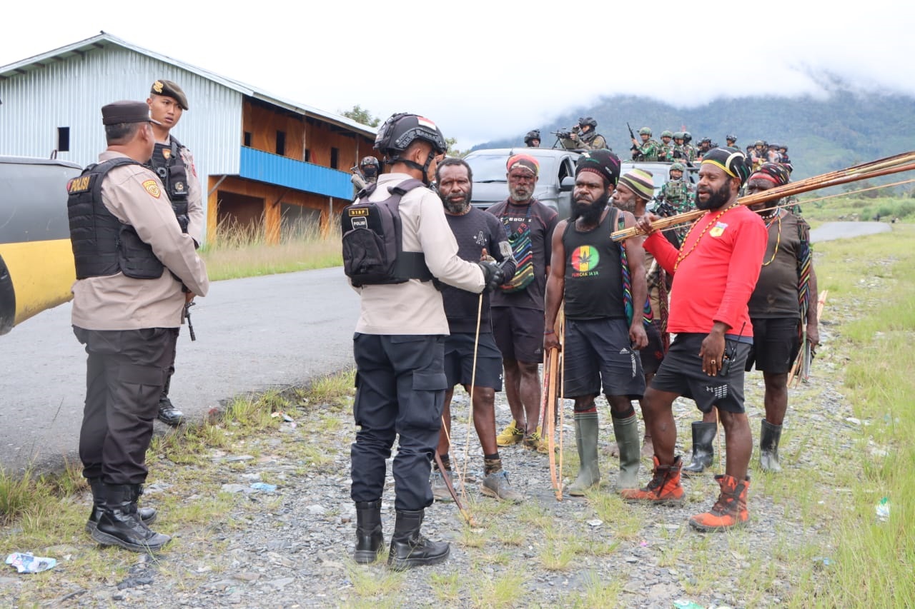 “Kami juga mengimbau warga yang berkerumun dengan membawa alat perang, agar membubarkan diri,” kata Kapolres Puncak Jaya AKBP Kuswara, melalui Kabag Ops Kompol R. Ahmad Hari Junianto.