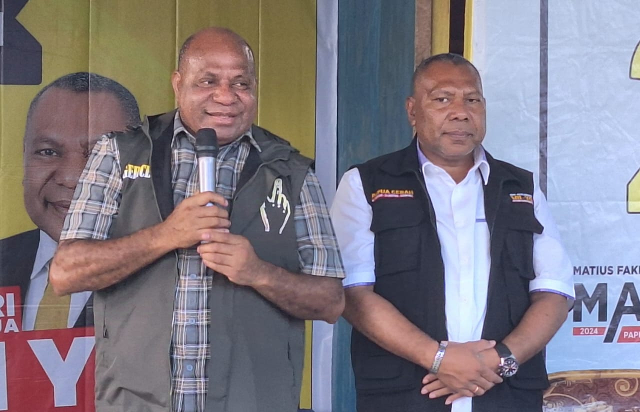 PAPUAINSIDE.ID, JAYAPURA,- Pasangan Calon Gubernur dan Wakil Gubernur, Nomor urut 2 Mathius D.Fakhiri- Aryoko Rumaropen dengan akronim MARI-YO unggul 50,49 % sementara pesaingnya BTM-YB yang meraih 49,51 %.