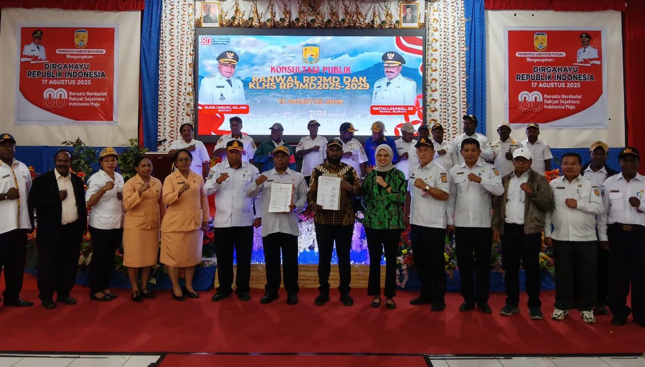 “Konsultasi Publik ini dilakukan untuk mendapatkan masukan dari seluruh pemangku kepentingan di Kabupaten Puncak, guna penyempurnaan Ranwal RPJMD serta Dokumen KLHS RPJMD 2025-2029. “RPJMD ini nantinya menjadi acuan utama bagi pemerintah daerah dalam melaksanakan pembangunan selama lima tahun ke depan periode 2025-2030,” terangnya.