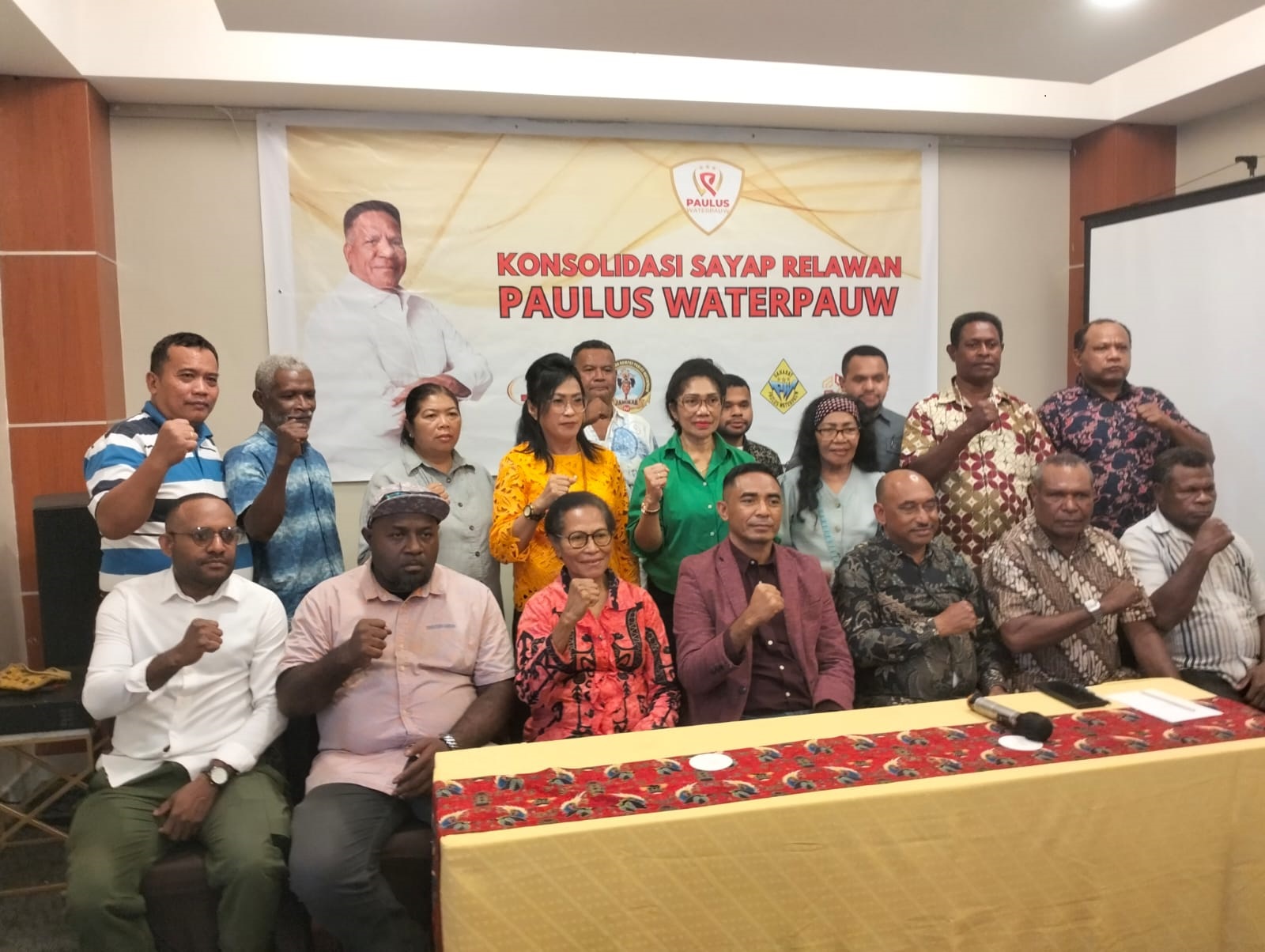 Masing-masing Mace for PW, Relawan Nusantar (RENUSA) Papua untuk Paulus Waterpauw, Jaringan Kerja Angkat Rumput (JANGKAR) Paulus Waterpauw, Millenial Papua for Paulus Waterpauw, Sahabat Paulus Waterpauw.