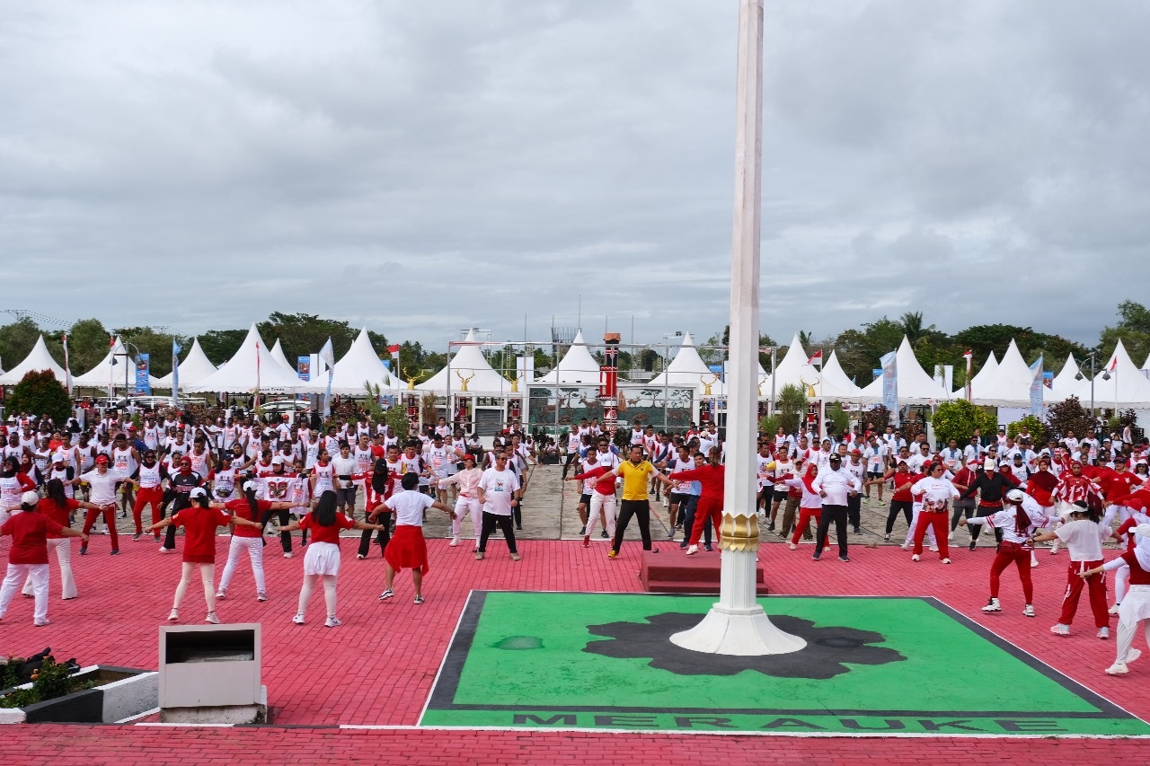 Kegiatantersebut diselenggarakan dalam bentuk Senam Bersama dan Fun Run yang dihadiri Bupati, Wakil Bupati, Forkopimda serta ribuanwarga di Kantor Bupati Merauke.