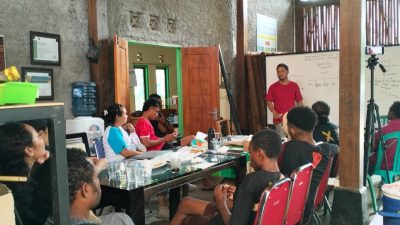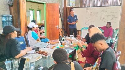 Nokeners berbagai isi noken tentang pengolahan vanili menjadi ekstrasi sabun, parfum, aroma perasa untuk minuman berakohol, dan ekstrasi vanila untuk berbagai produk makanan dan minuman di sela-sela Menoken Kembali Mula Baku Belajar November 2020-2024 di Pondok Tani, Desa Kebonrejo, Kecamatan Salaman, Kabupaten Magelang, Provinsi Jawa Tengah, Minggu (24/11/2024) lalu. (Foto: Makawaru da Cunha/Papuainside.id)