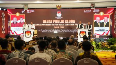 PAPUAinside.id, JAYAPURA—KPU Provinsi Papua kembali menggelar debat ke 2 Calon Gubernur dan Wakil Gubernur Papua tahun 2024 di Suni Hotel Sentani, Kabupaten Jayapura, Jumat (8/11/2024) malam.