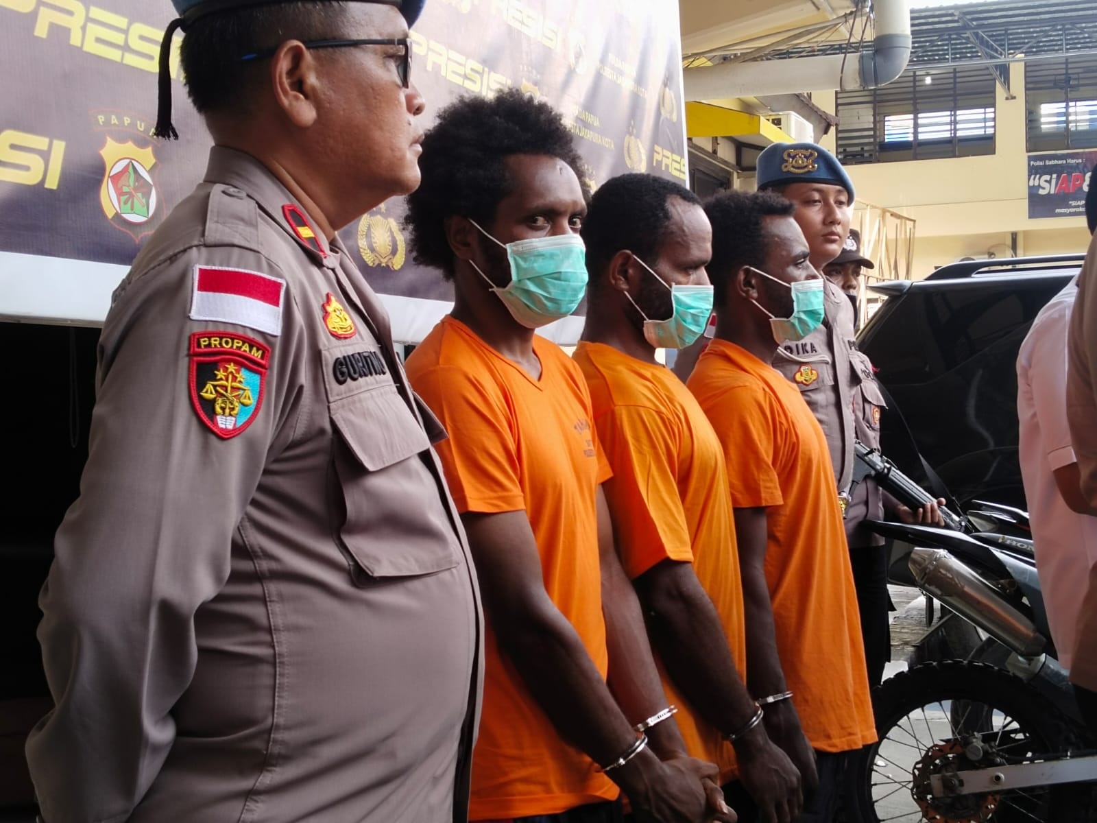 Ketiganya ditangkap lantaran melakukan tindakan kekerasan terhadap aparat dalam demo anarkis tolak transmigrasi di Lingkaran Abepura, Kota Jayapura, Jumat (15/11/2024).