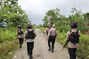 Aparat Polisi saat mengejar pelaku kasus dugaan penganiayaan warga sipil di Yahukimo, Papua Pegunungan. (Foto: Humas Polda Papua)