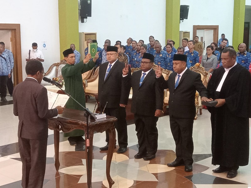 Upacara pelantikan berlangsung di Aula GSG Sian Soor, Kantor Walikota Jayapura, Papua, Senin (17/4/2023).
