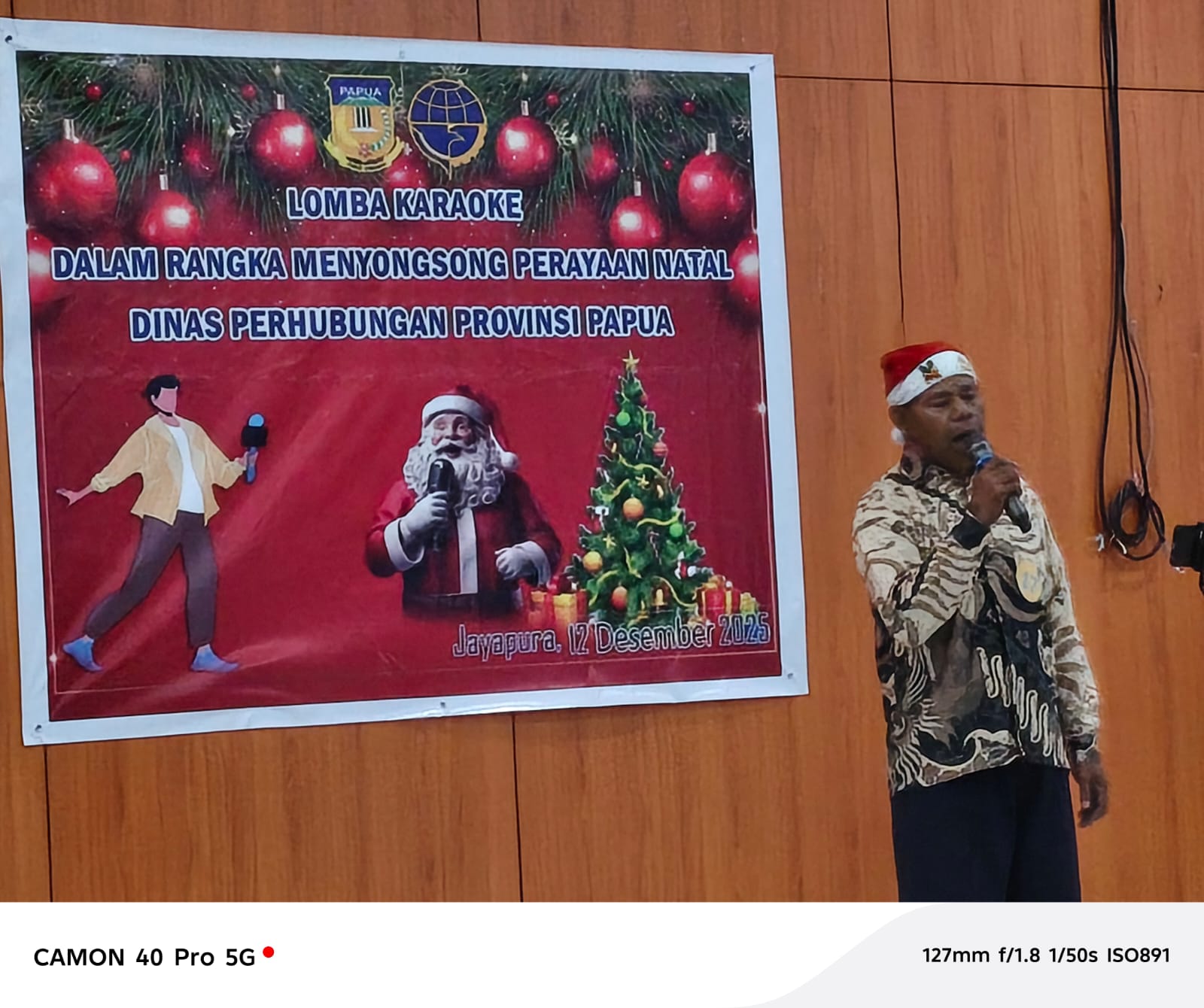 Lomba karaoke lagu-lagu Natal berlangsung meriah di Aula Dishub Papua, Kota Jayapura, Jumat (12/12/2025). Lomba menghias kandang dijadwalkan pada Rabu (17/12/2025).