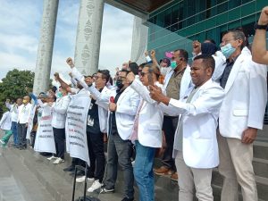 PAPUAinside. id, JAYAPURA—Puluhan dokter spesialis dan sub spesialis di tiga rumah sakit di Jayapura mendatangi Kantor Gubernur Papua, Dok II, Jayapura, Senin (28/8/2023) siang.