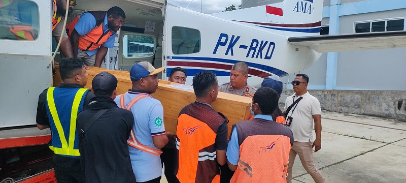 Kapolres Jayapura AKBP Frederickus WA Maclarimboen melalui Kabag Ops Kompol Erol Sudrajat mengatakan, dari Bandara Sentani kedua jenazah Yonathan Arruan (46) dan Asri Obet (58) langsung dibawa ke kediaman Ketua Ikatan Keluarga Toraja (IKT) Kabupaten Jayapura di Kompleks BTN Ceria, Sentani.