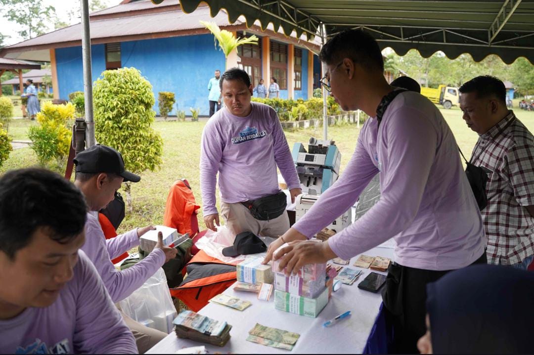 Tim Ekpedisi Rupiah Berdaulat (ERB) 2024 Papua, melayani penukaran kas keliling Uang Tidak Layak Edar (UTLE) di 5 wilayah Provinsi Papua, yang termasuk dalam kawasan 3T. (Foto: Dok/Bank Indonesia Papua)