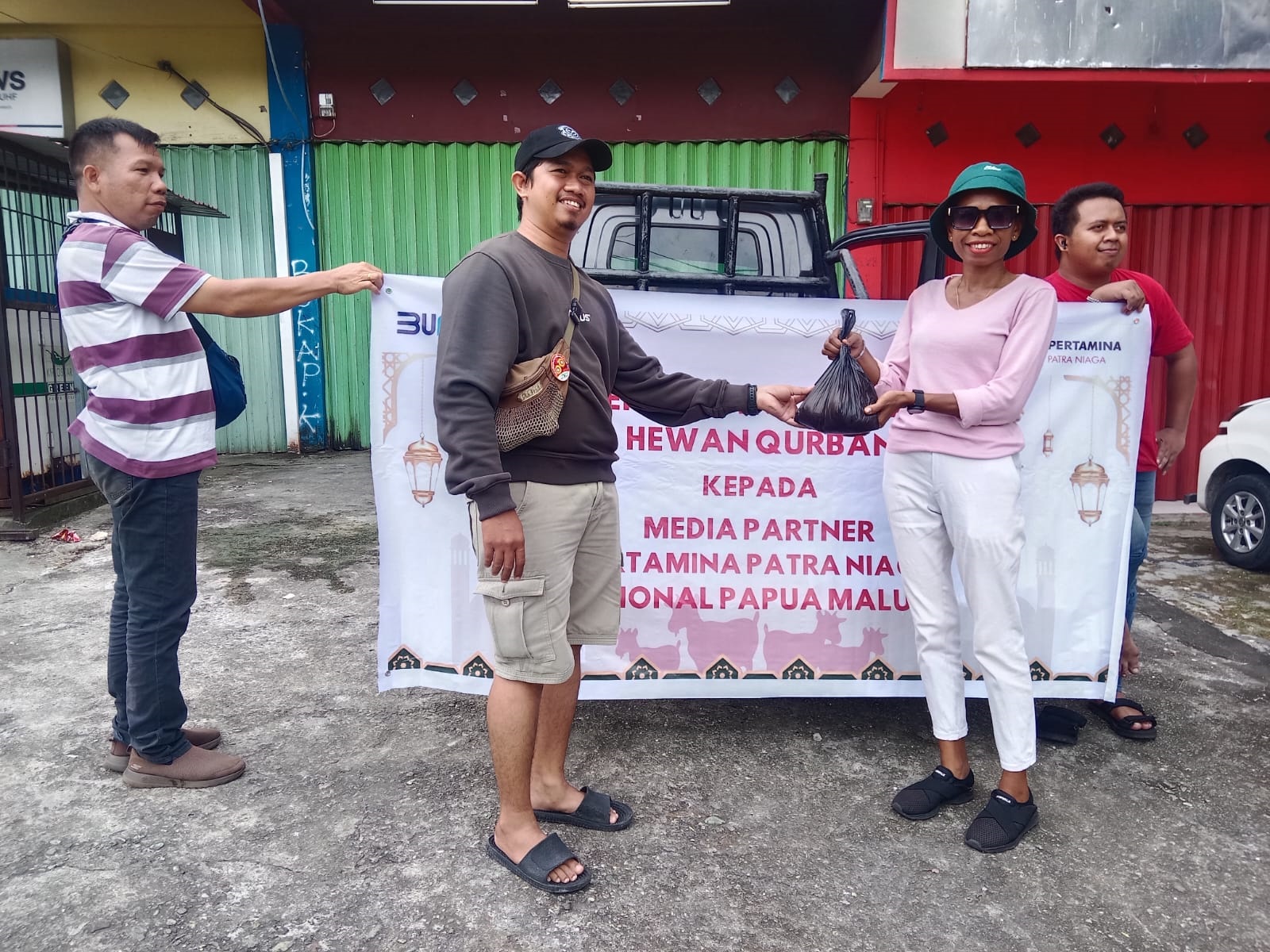 Menurut Cornelia, satu hewan kurban yang diberikan dari Pertamina telah di terima 80 orang wartawan Kabupaten dan Kota Jayaura pada perayaan hari raya Idul Adha.