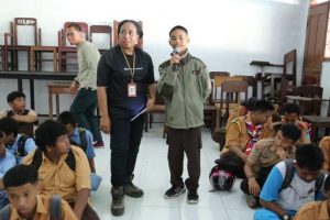Ketua Panitia BK3N PTFI Area Dataran Rendah, Handanawirya Narottama menyampaikan kepada para siswa untuk mengikuti kegiatan edukasi keselamatan pengguna jalan ini dengan baik.
