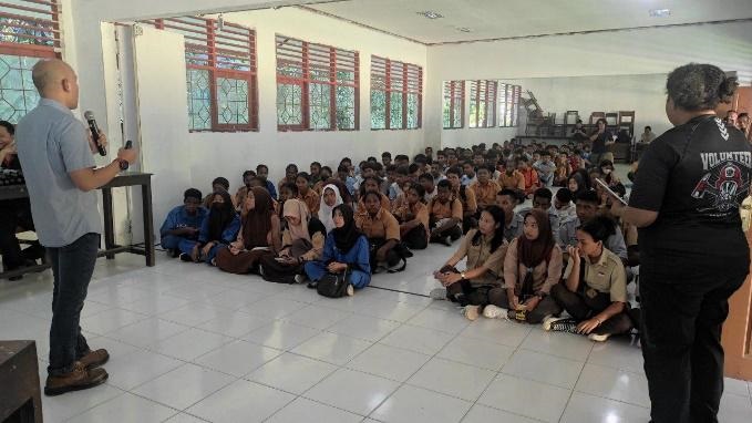 Salah satu kegiatannya adalah mendukung edukasi tentang keselamatan pengguna jalan di Area Kuala Kencana bagi siswa dan guru bertempat di ruang pertemuan SMKN 1 Mimika, Jumat (19/1/2024).