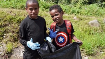Anak-anak di kampung Waa Banti turut berpartisipasi membersihkan lingkungan tempat tinggal mereka sejak usia dini. (Foto: Dok/PTFI)
