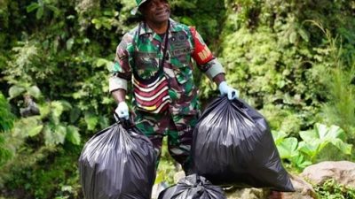 Kegiatan bersih lingkungan yang dilakukan komunitas karyawan bersama warga kampung Waa Banti mendapat dukungan penuh dari unsur TNI-Polri. (Foto: Dok/PTFI)
