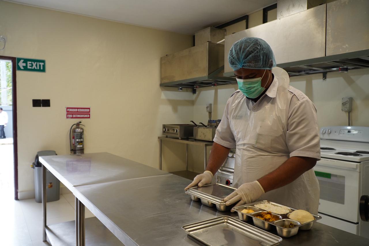 Petugas dapur menyiapkan makanan bagi pasien di Dapur Mandiri RS Waa Banti. Sebanyak 10 petugas dapur akan menerima pelatihan pengoperasian peralatan dari PT Pangan Sari Utama agar dapat mengoperasikan peralatan dapur lebih baik. (foto: Corcom PT FI)