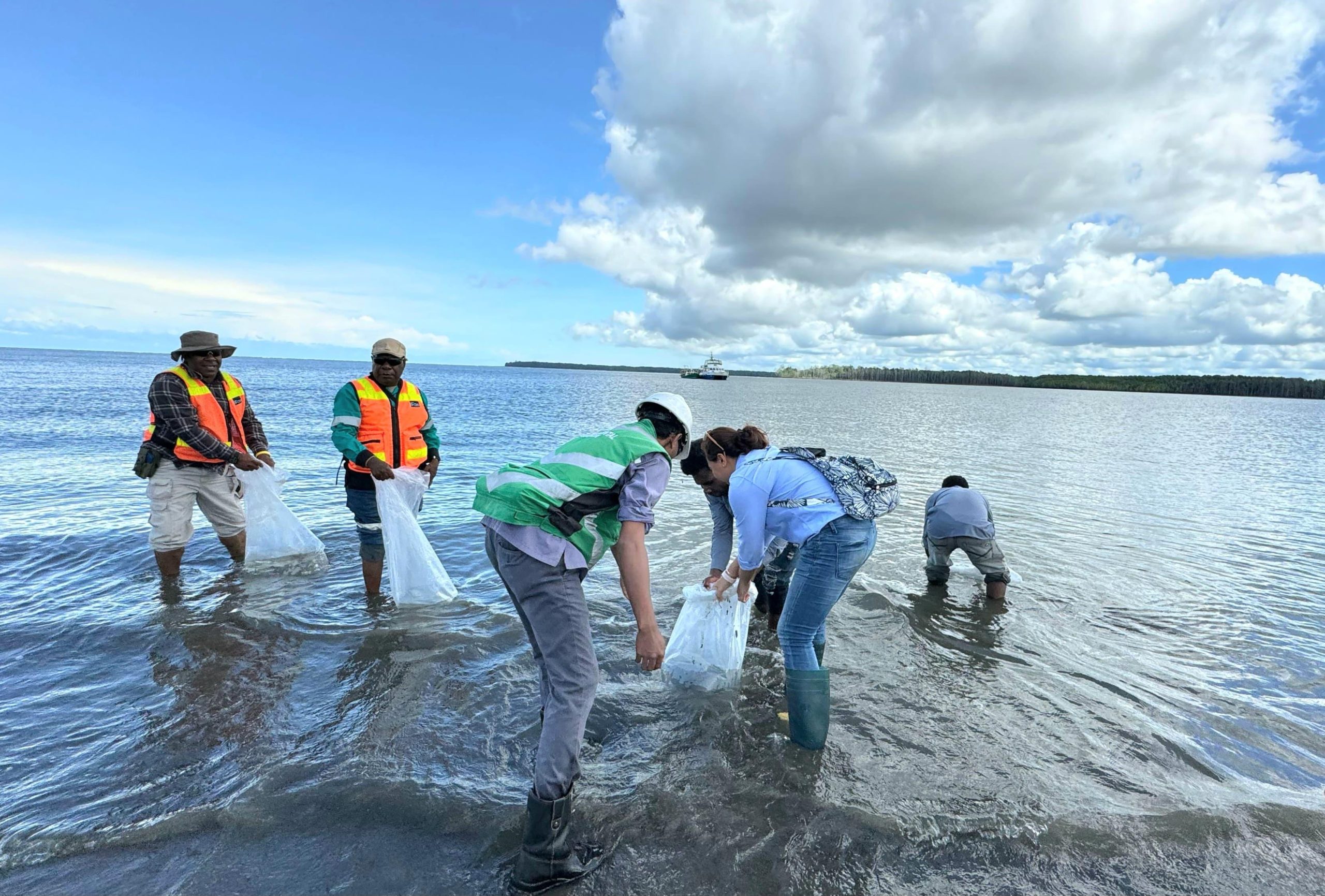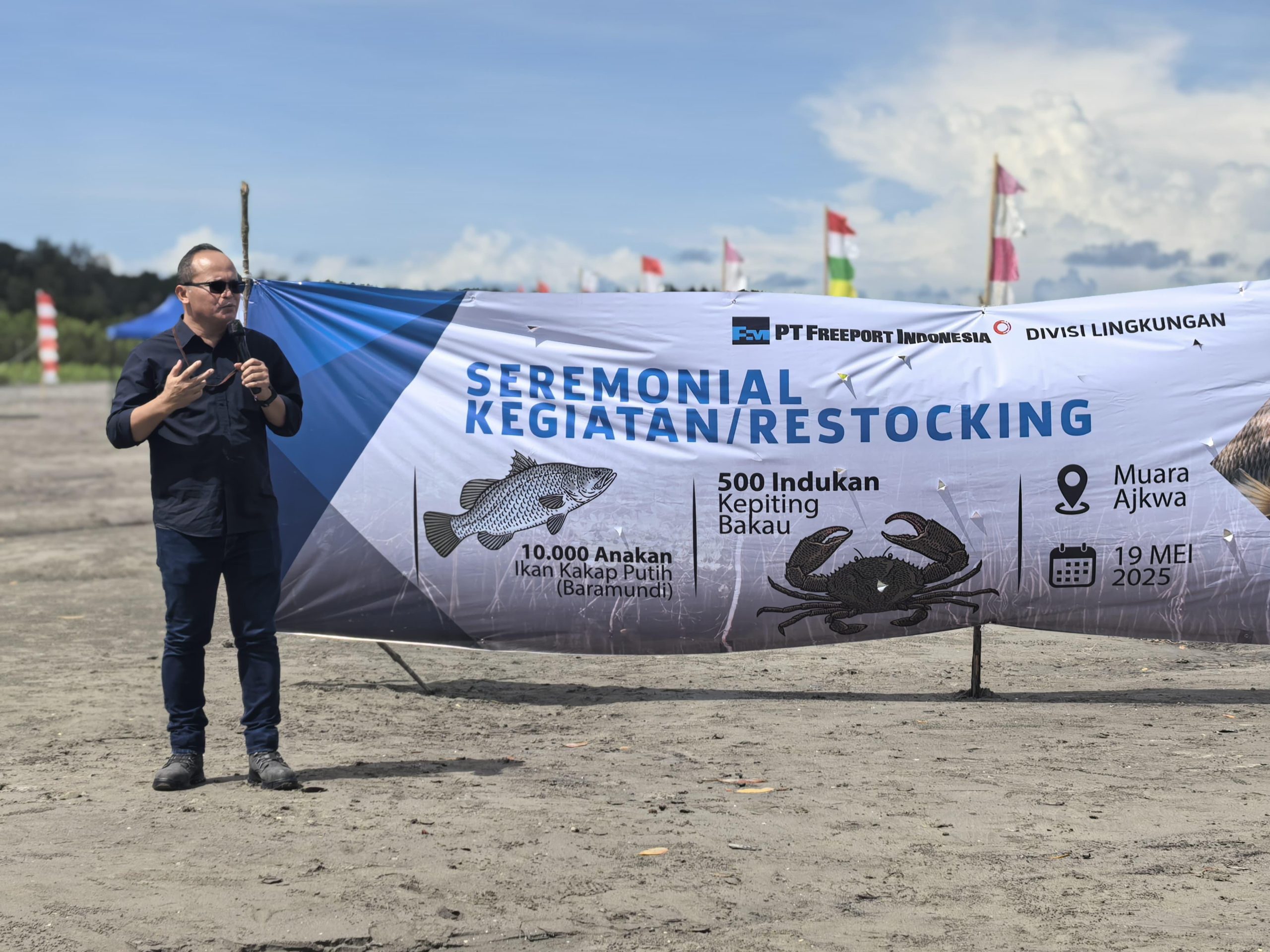 PAPUAINSIDE.ID, TIMIKA—PT Freeport Indonesia (PTFI) berkomitmen menjaga kelestarian ekosistem perairan terutama di sekitar wilayah operasional perusahaan dengan menebar (restocking) sebanyak 10.000 ekor anakan ikan barramundi dan 500 ekor indukan kepiting bakau, di Muara Sungai Ajkwa, Kabupaten Mimika, Papua Tengah, Senin (19/5/2025).