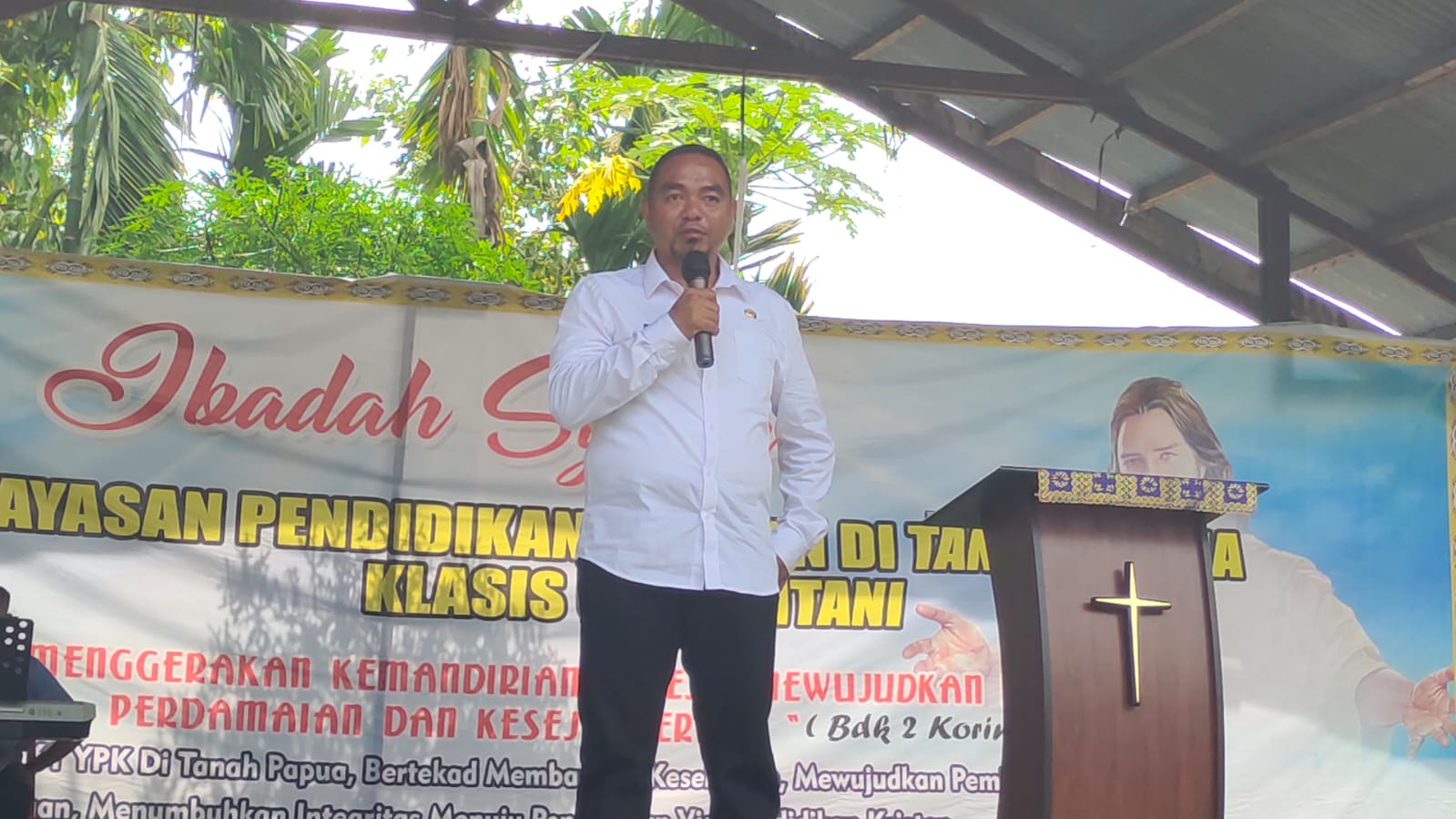 PAPUAinside.id, SENTANI—Penjabat (Pj) Bupati Jayapura, Triwarno Purnomo, menghadiri ibadah syukur HUT ke-61 Yayasan Pendidikan Kristen (YPK) di Tanah Papua di Kantor Klasis GKI Sentani di Kompleks Puspenda Hawai, Rabu (8/3/2023).