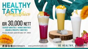 - Smooties dengan harga Rp 30.000,-nett /glass. Tersedia dengan 3 macam varian (mangga, sirsak dan juga buah naga).