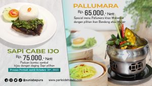 - Pallumara, promo special racikan nusantara dari Sulawesi Selatan, yang dihadirkan di Restaurant 38 dengan racikan sambal mangga yang menggugah selera dapat dinikmati dengan harga Rp 65.000,- nett/porsi.