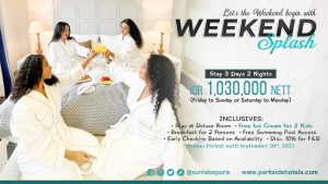 Turpyn mengatakan, promo kamar special dihadirkan di bulan ini adalah promo Savetember, dengan harga Rp 749.999,-nett /night dan juga promo kamar Weekend Splash yang berlaku di Weekend pada hari Jumat – Minggu (Paket 3 Hari 2 Malam).