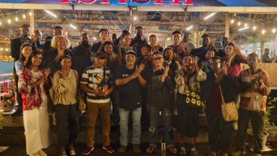 Nokeners menyampaikan SALAM MENOKEN usai kegiatan “Menoken” dalam rangka peringatan Hari Noken dan Hari Ibu di Cafe Isasai, Kota Jayapura, Sabtu (20/12/2025).