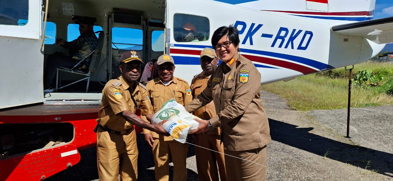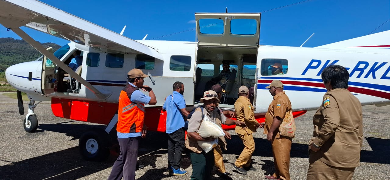 Bantuan dikirim menggunakan pesawat yang diterbangkan dari Bandara Oksibil sebanyak 4 flight, Selasa (23/04/2024).