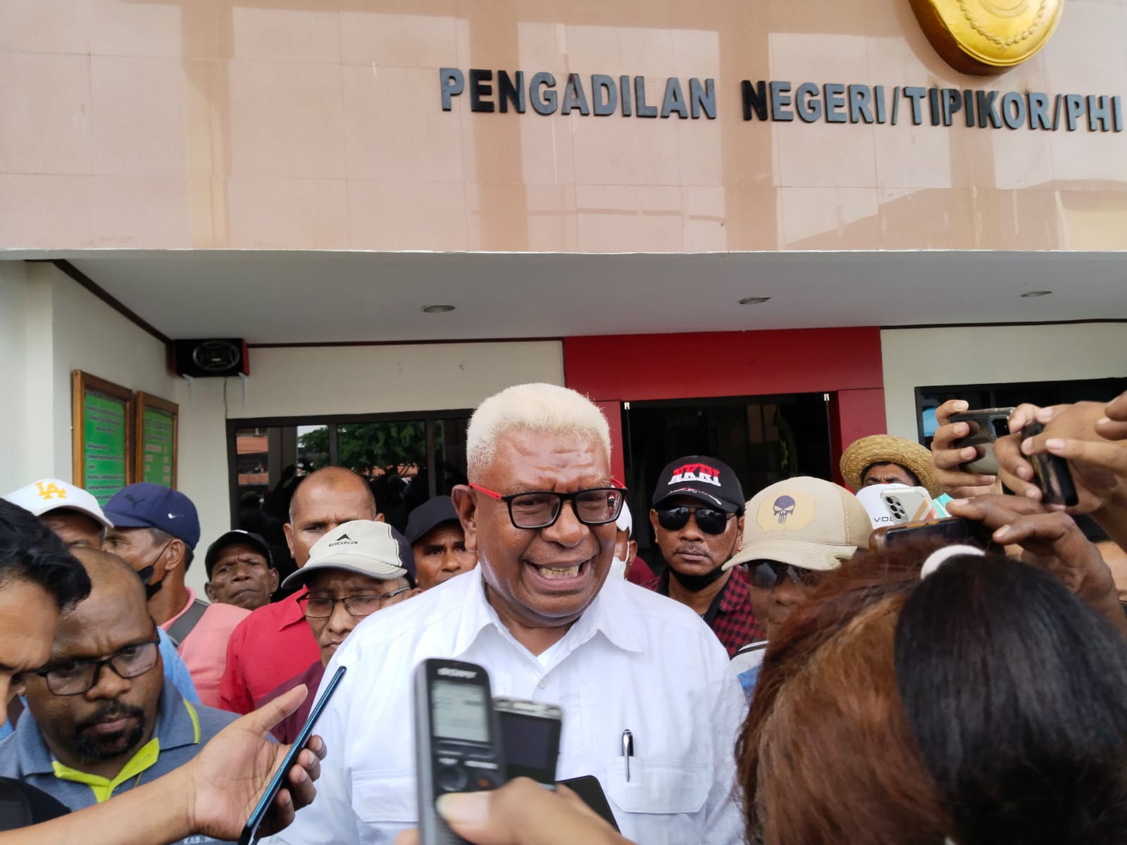 Plt Bupati Mimika Johannes Rettob, usai menjalani sidang pokok perkara kasus dugaan korupsi. (Foto: Faisal Narwawan/Papuainside.id)