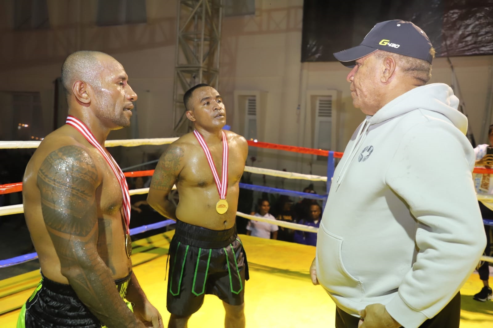 “Kami sangat terharu sekali, karena besarnya animo penggemar tinju yang datang menonton. Ada dua cabor yang digemari masyarakat tinju Papua, tinju dan sepakbola,” ungkap Apolos Kurni. **