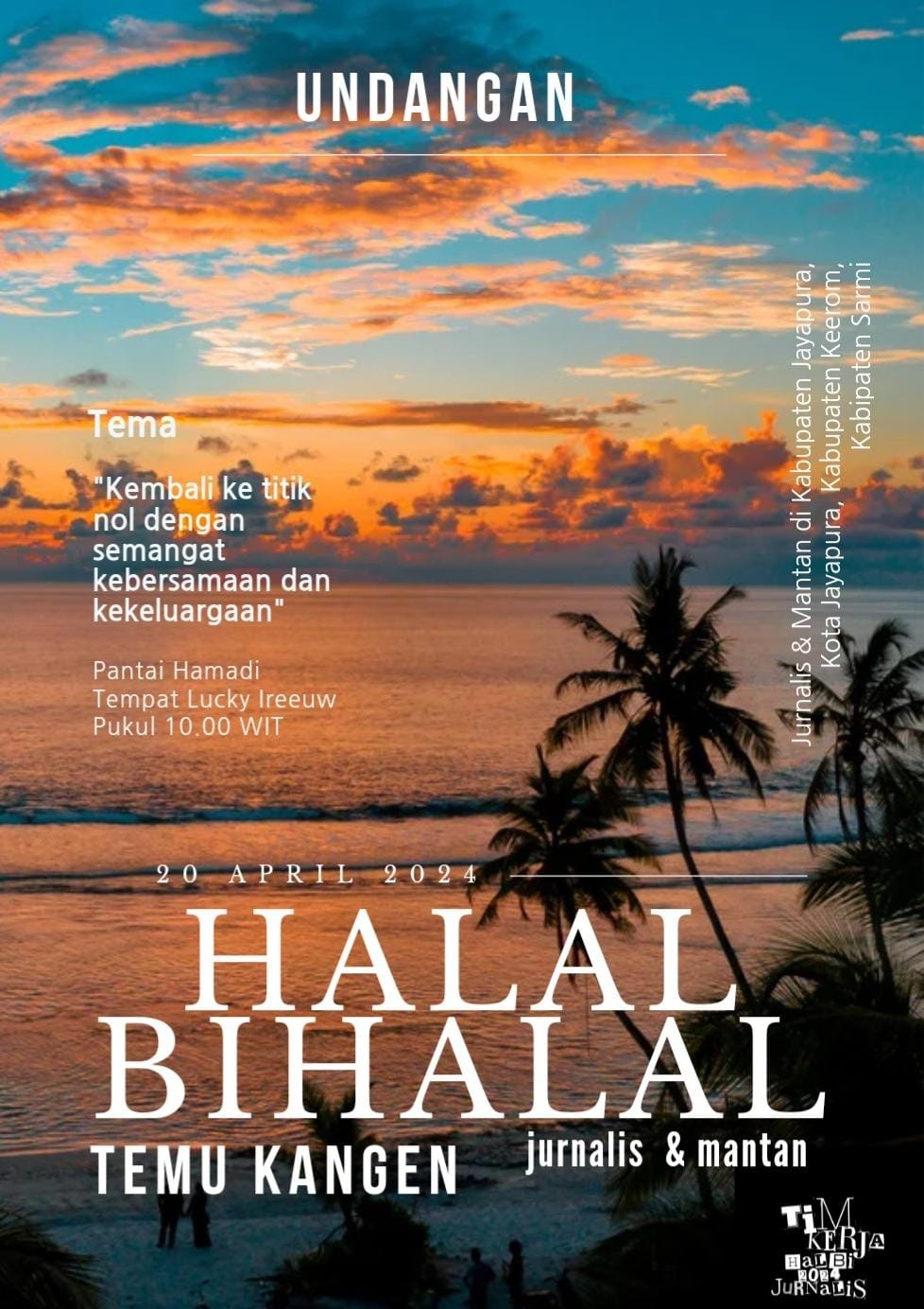 PAPUAINSIDE.ID, JAYAPURA—Jurnalis dan mantan jurnalis di Kota Jayapura, Kabupaten Jayapura dan Kabupaten Keerom akan melaksanakan Halal Bihalal Hari Raya Idul Fitri 1445 H, Sabtu (20/4/2024) di Pantai Hamadi. Kegiatan ini mengambil, ’’Kembali ke titik nol dengan semangat kebersamaan dan kekeluargaan.’’