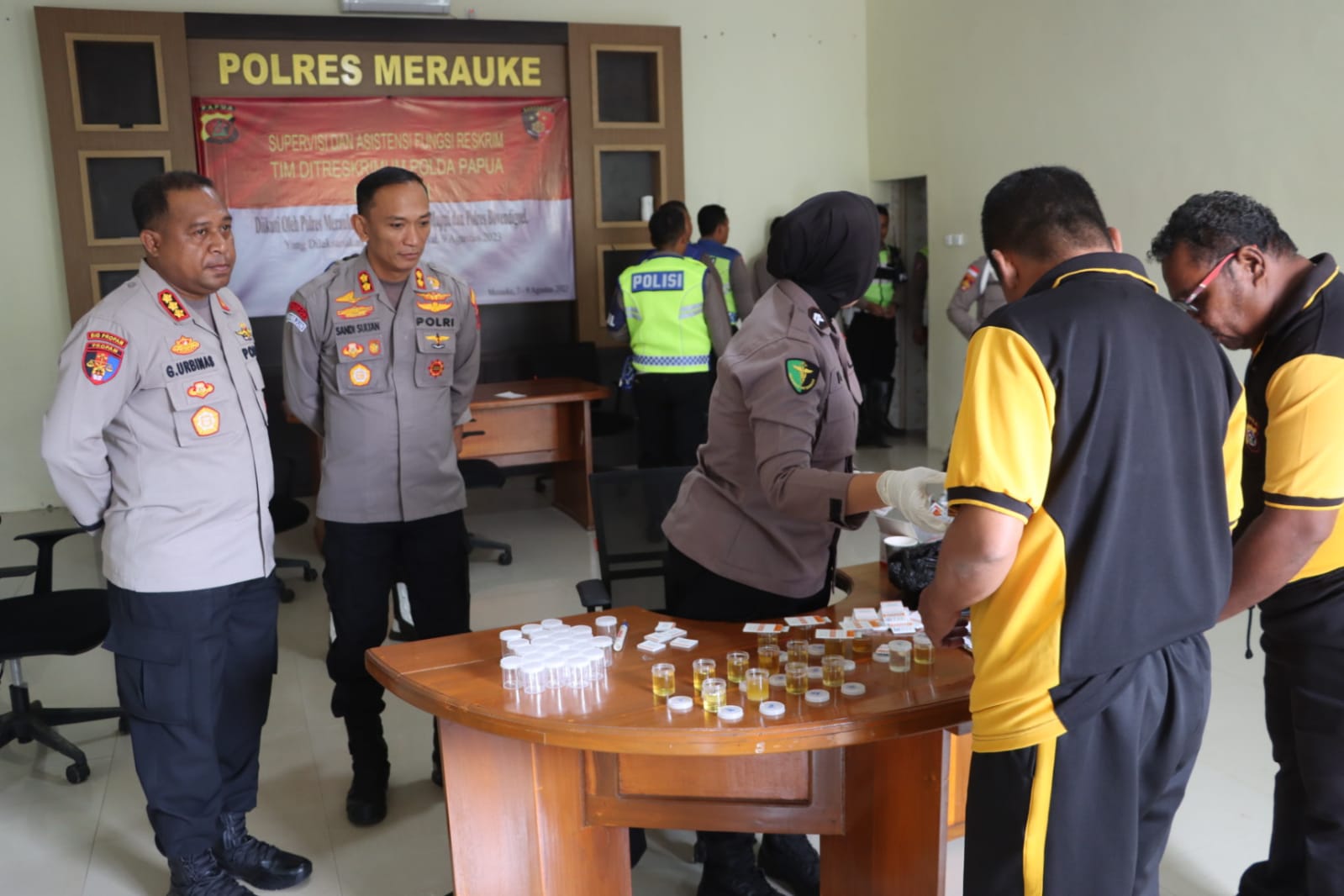 Usai memberikan arahan, personil Bid Propam Polda Papua melaksanakan Gaktibplin terhadap personil Polres Merauke berupa memeriksa sikap tampang dan test urin serta kelayakan senjata api karena merupakan prosedur dan tindak lanjut dalam pelaksanaan tugas.