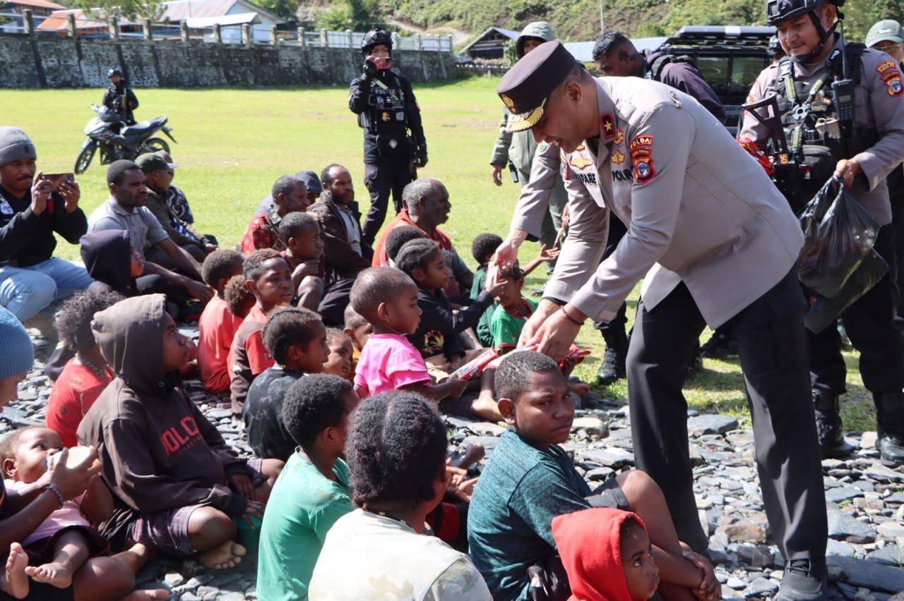 Pada kesempatan tersebut, Kapolda Papua Tengah juga memberikan semangat dan motivasi serta bantuan berupa sembako maupun snack kepada anak-anak.