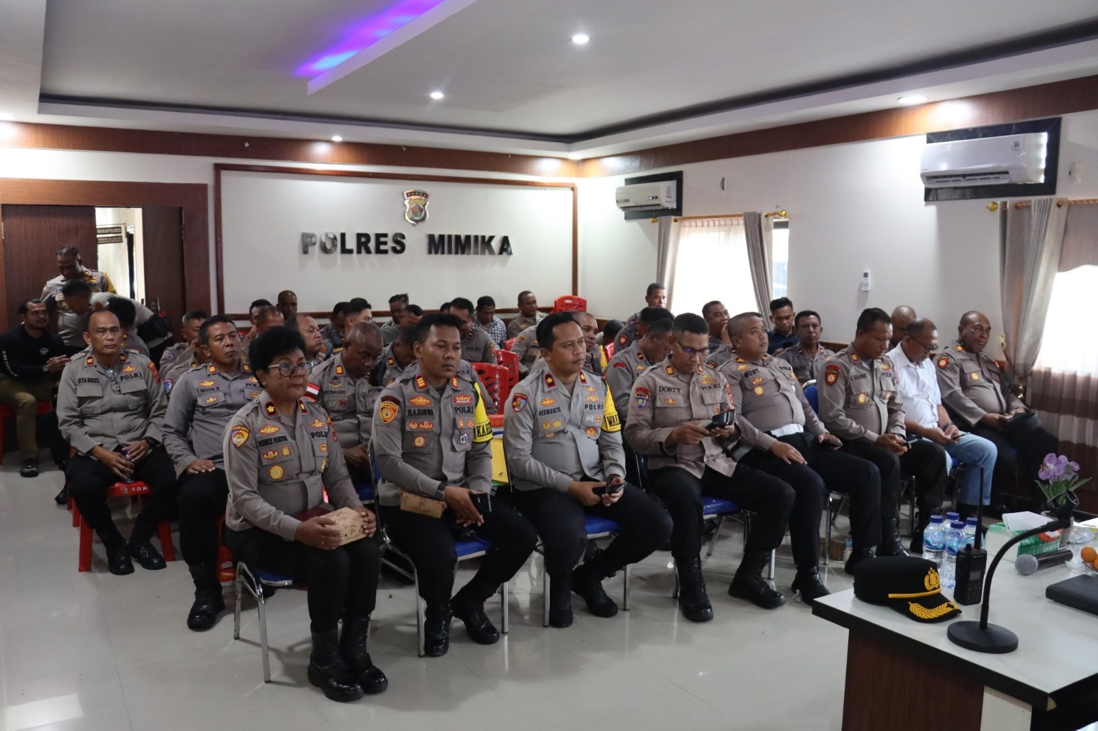 Kegiatan tersebut berlangsung di ruang Vicon Polres Mimika dan dihadiri Kapolres Mimika, Wakapolres, Kabag Ren, serta sejumlah perwira dan Kapolsek di Jajaran Polres Mimika, Sabtu (1/2/2025).