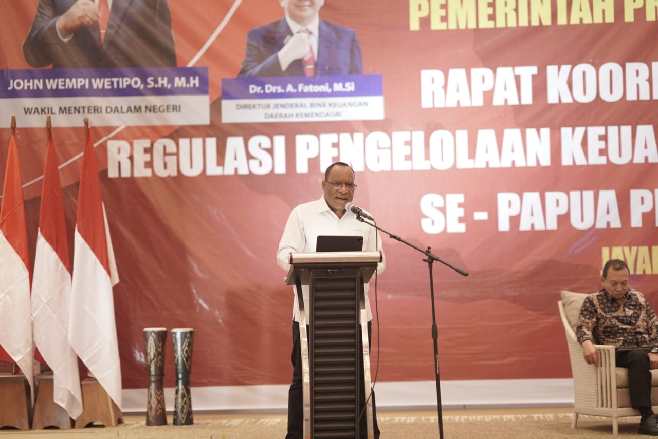 Hal ini disampaikan Wamendagri John Wempi Wetipo, SH, MH, usai menjadi nara sumber pada Rapat Koordinasi dan Sosialisasi Regulasi Pengelolaan Keuangan Daerah Tahun 2023 Pemerintah Provinsi Papua Pegunungan di Hotel Suni Abepura, Jumat (24/3/2023).