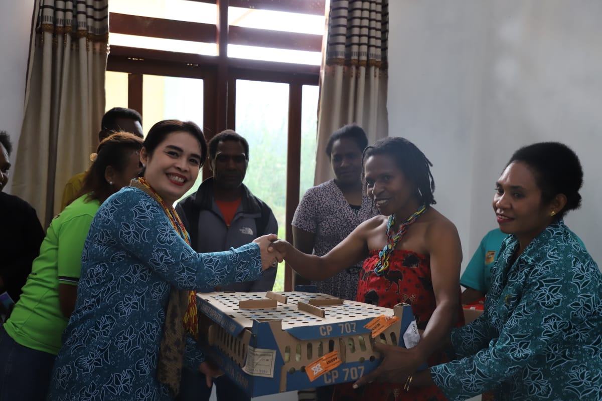 PAPUAInside.id, PEGUNUNGAN ARFAK – Ketua Tim Penggerak PKK Papua Barat, Ny. Roma Megawanty P, S.Komp.,M.Si memimpin jajaran menyambangi kabupaten Pegunungan Arfak menyerahkan bantuan kepada 10 kelompok tani dan peternak, Jumat (18/8/2023).