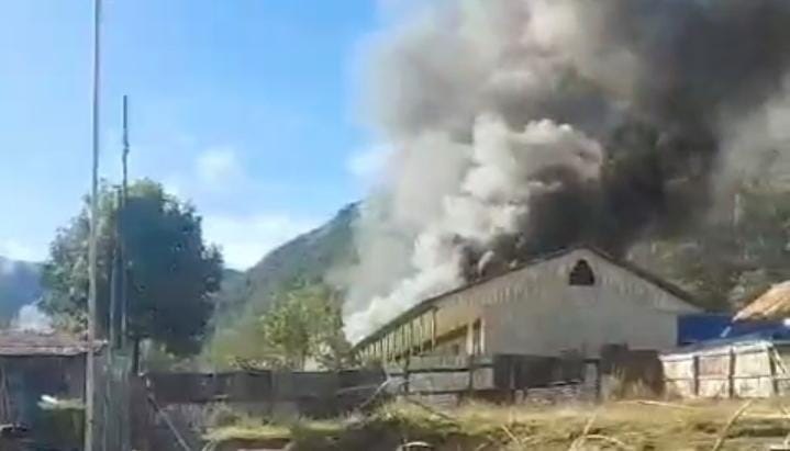 KKB bakar gedung SD di Distrik Homeyo, Kabupaten Intan Jaya, Papua Tengah, Rabu (1/5/2024) pagi. (Foto: Satgas Damai Cartenz)