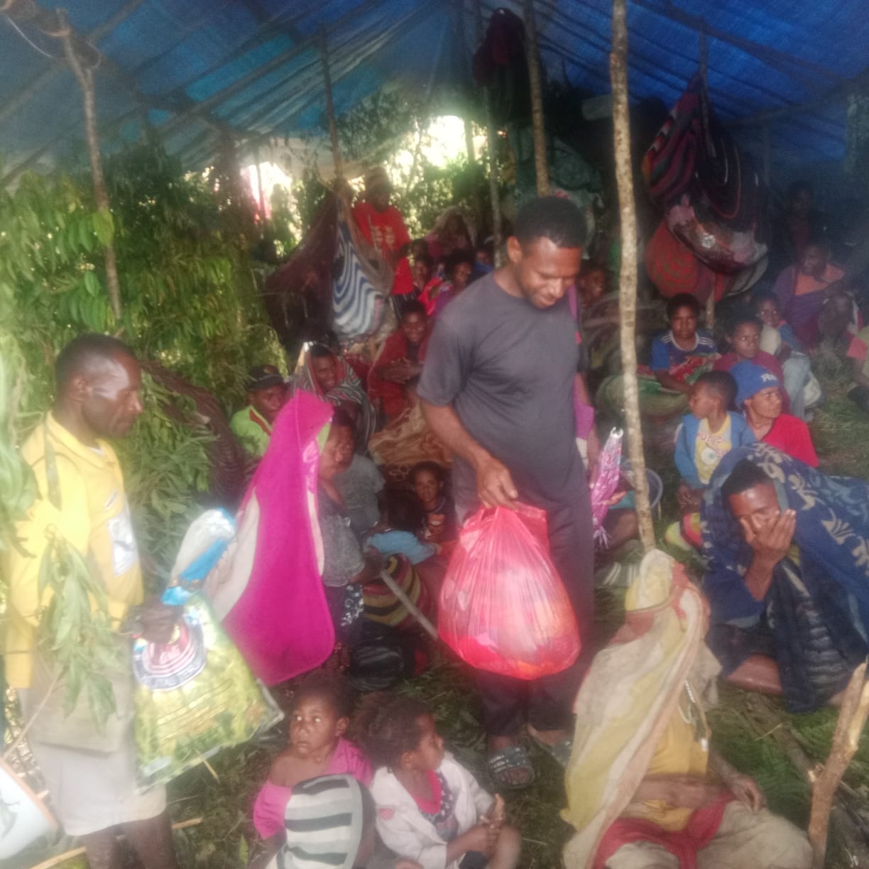 Warga Kampung Borban Distrik Okbab Pegunungan Bintang di tenpat pengungsian akibat tanah reta-reta dan longsor. (foto: ist)