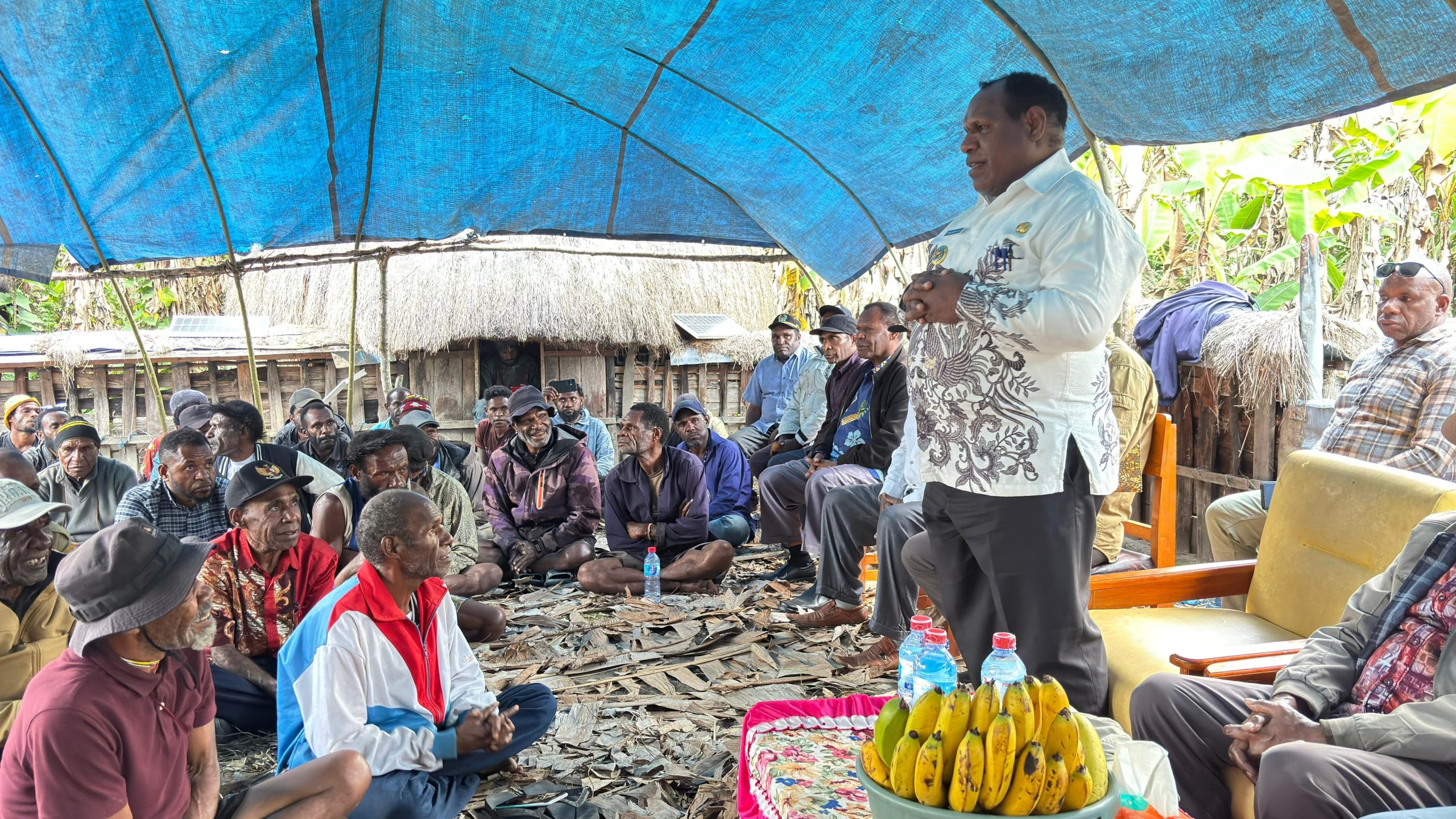 Bupati Jayawijaya, Atenius Murib, berdiskusi langsung dengan warga masyarakat Distrik Silo Karno Doga dalam kunjungan kerjanya ke wilayah tersebut. (Foto: Diskominfo Jayawijaya)