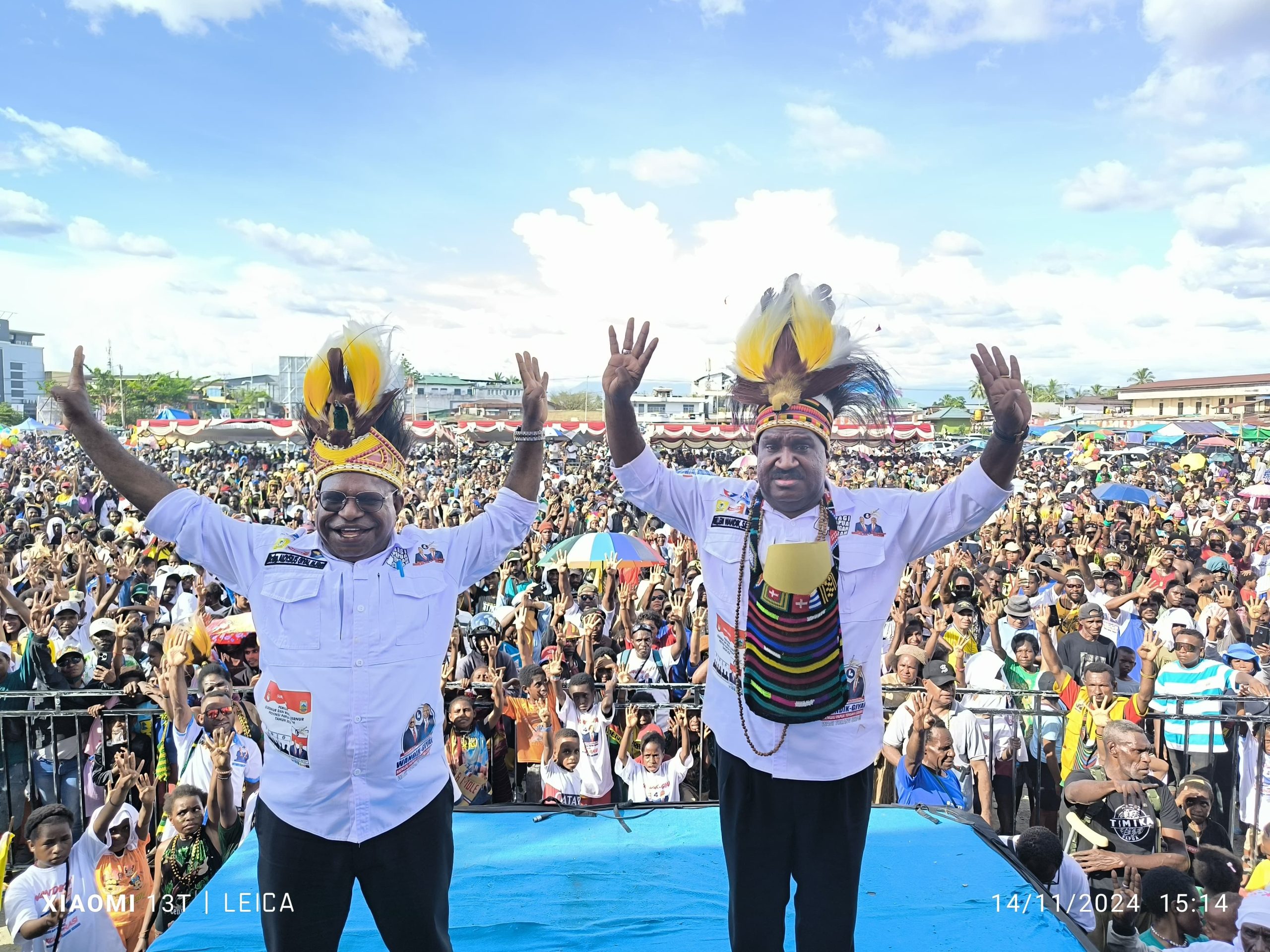 Kehadiran ribuan pendukung selaras dengan hasil Lembaga survey yang menunjukkan elektabilitas pasangan yang disapa WAGI-wandik Giyai tersebut melambung jauh dibanding kandidat lainnya. Lapangan Pasar Lama Timika menjadi saksi tanda-tanda kemenangan untuk pasangan WAGI.