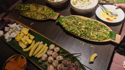 Kuliner lokal Sentani dalam kegiatan Menoken “Isi Noken Mama, Pangan Lokal dan Puisi” di Café Isasai, Waena, Kota Jayapura, Papua, Sabtu (20/12/2025). (Foto: Papuainside.id/Makawaru da Cunha)