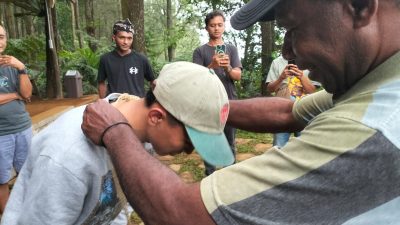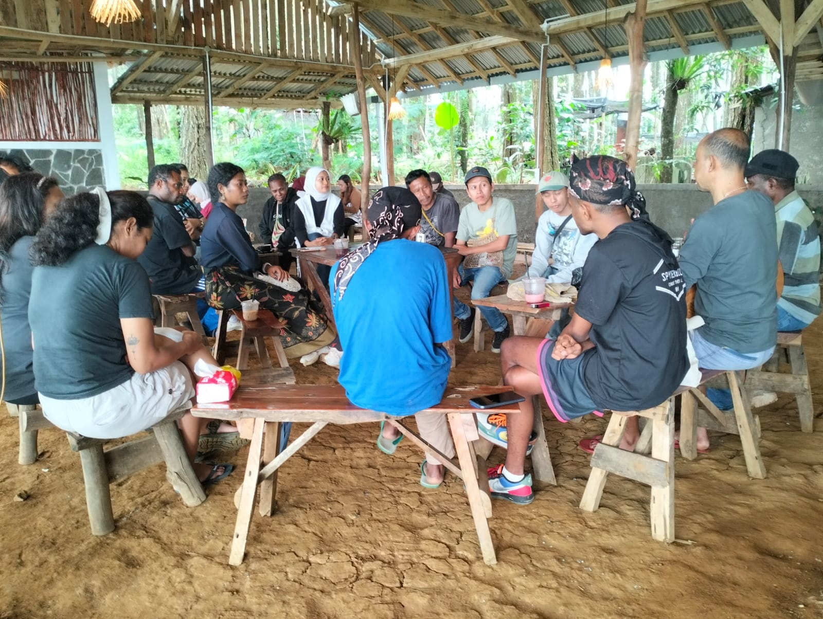 Nokeners menyampaikan salam menoken, usai menoken di Kedai Kopi Sapta Wening, Batang, Jawa Tengah, 1 Desember 2024.  (Foto: Makawaru da Cunha/Papuainside.id)
