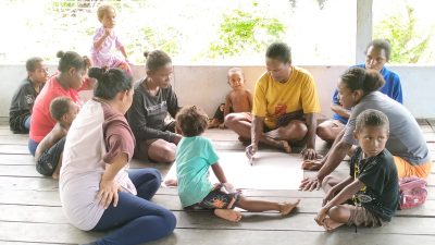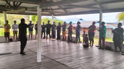 Edo membagi 3 kelompok masing-masing 4-5 mama mama, untuk menjawab pertanyaan potensi-potensi yang ada di Kampung Abar, harapan dan Rencana Tindaklanjut atau RTL.
