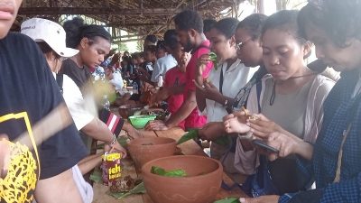 PAPUAinside.id, SENTANI—Kegiatan menoken sejak tahun 2021 digelar di Kampung Abar Distrik Ebungfauw, Kabupaten Jayapura, Provinsi Papua. Kali ini, melibatkan kelompok kaum perempuan menggusung Tema Menoken Mama Mama Kampung Abar: Peluang, Tantangan dan Harapan Menuju Kampung Wisata, Jumat (28/3/2025) lalu.