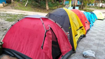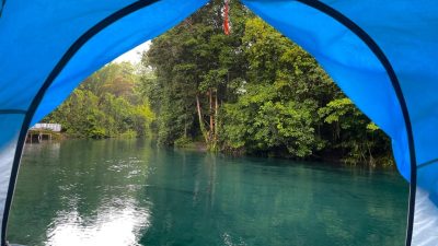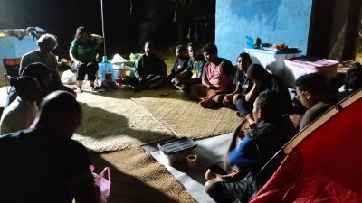 Komunitas Menoken menggunakan camping groud, untuk menginap semalam di Kali Sembra, Kampung Srer Sembra, Distrik Seremuk, Kabupaten Sorong Selatan, Provinsi Papua Barat Daya, Kamis (19/12/2024). (Foto: Makawaru da Cunha/Papuainside.id)
