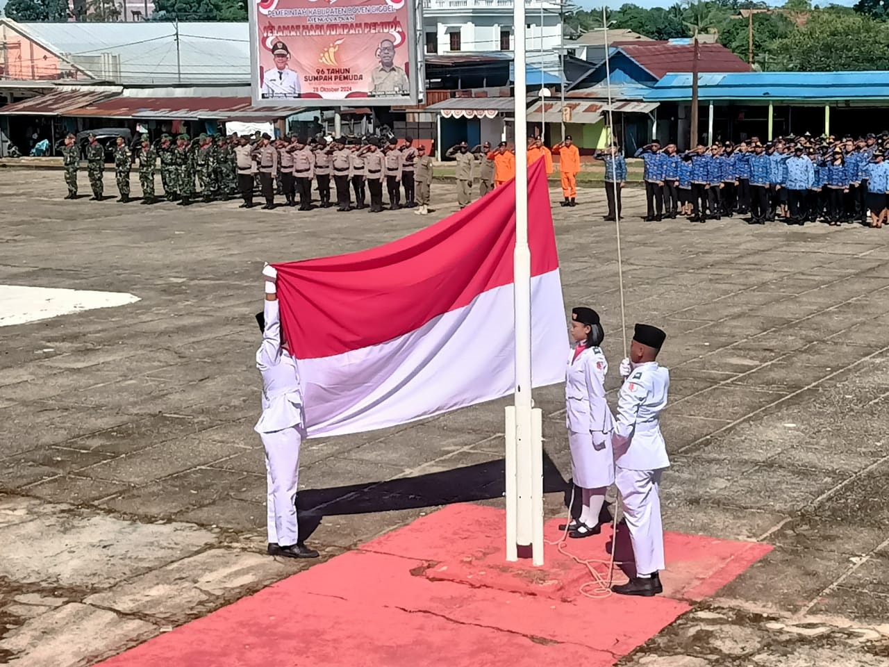 PAPUAinside.id, JAYAPURA—Upacara memperingati Hari Sumpah Pemuda (HSP) ke-96 Tahun 2024 di Kabupaten Boven Digoel di Lapangan Upacara Kantor Bupati, Jalan Trans Papua Km 01 Kampung Persatuan, Distrik Mandobo, Kabupaten Boven Digoel, Provinsi Papua Selatan, Senin (28/10/2024).