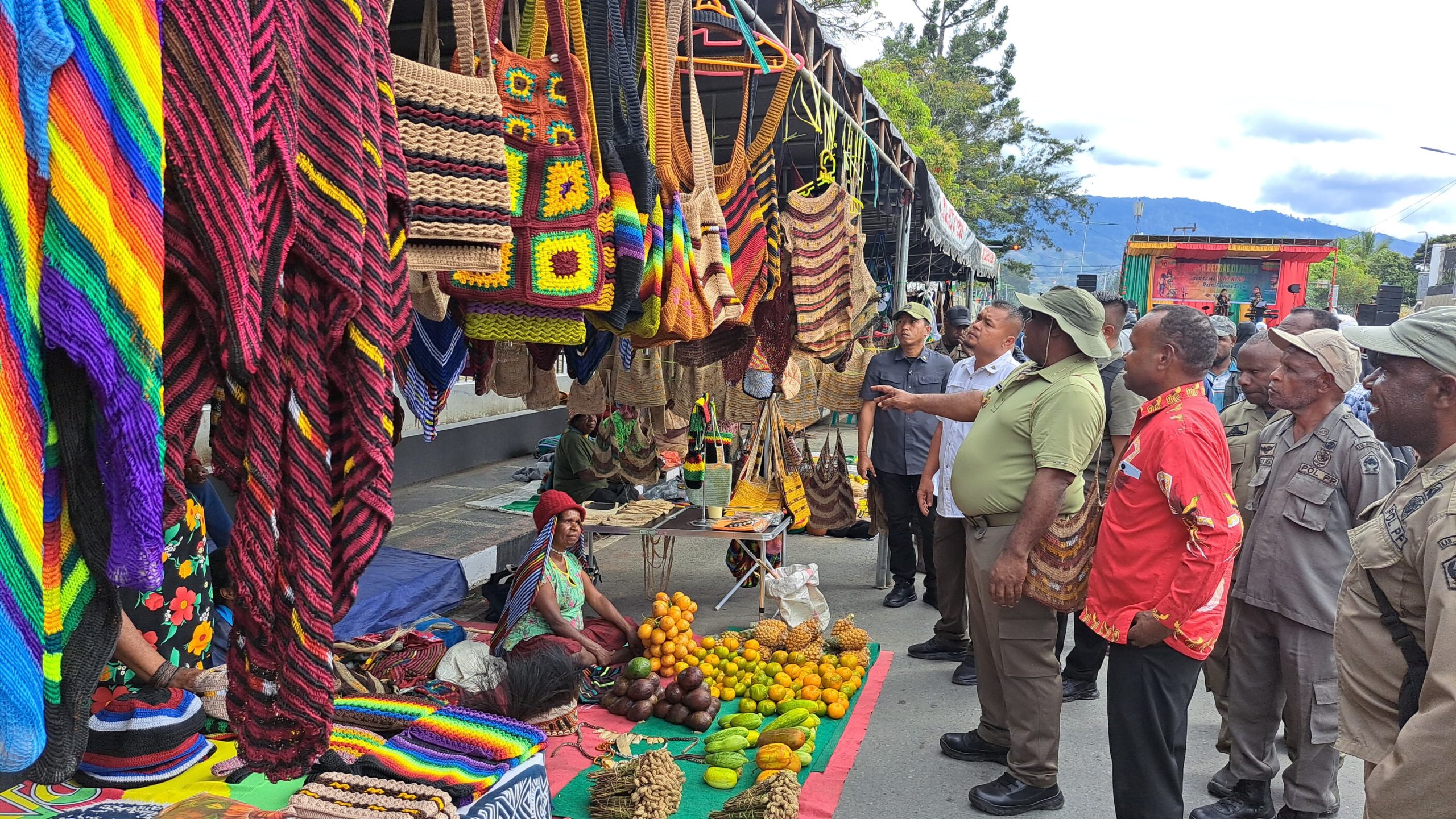 Usai memberi sambutan, bupati Jayawijaya meninjau langsung booth UMKM-UMKM disepanjang lokasi acara. **